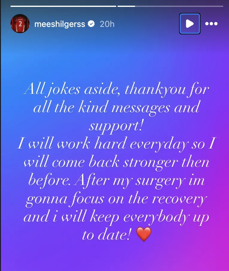 Alih-alih kembali ke lapangan, Mees justru mengalami musibah baru saat latihan pekan lalu. Pemeriksaan medis mengonfirmasi adanya robekan pada ligamen lutut kanan, yang mengharuskannya menjalani operasi dalam waktu dekat.